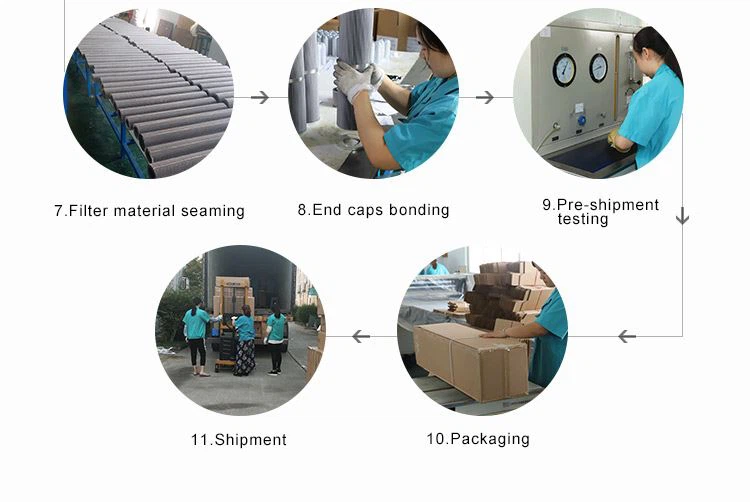 Филтерски елемент са набором од нерђајућег растопа прихвата све завршне капе обрађене од нерђајућег челика; оквир за пробијање; Заваривање са металном мрежом од нерђајућег челика 304 или 316Л пресавијањем.